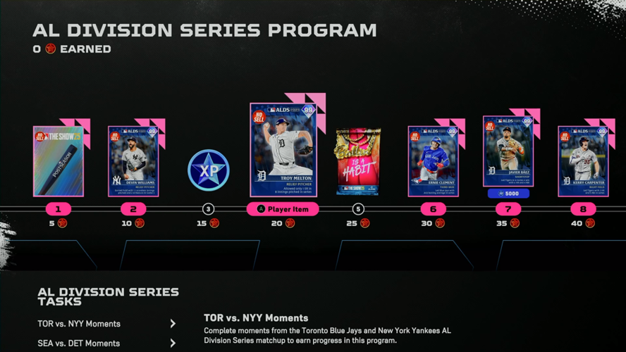 Within Diamond Dynasty, there are two dedicated programs for the Division Series—one representing the American League and the other for the National League. Players can unlock all the cards by simply progressing through these programs without needing any stubs or additional purchases.