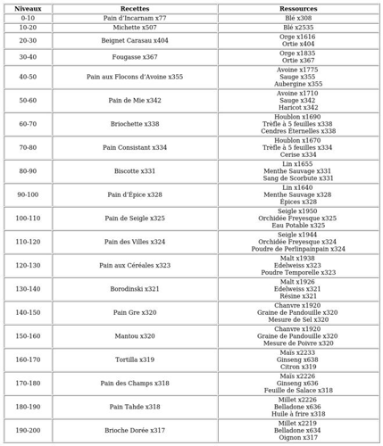 Vous y trouverez toutes les informations essentielles pour planifier votre progression et maximiser votre efficacité dans le jeu.